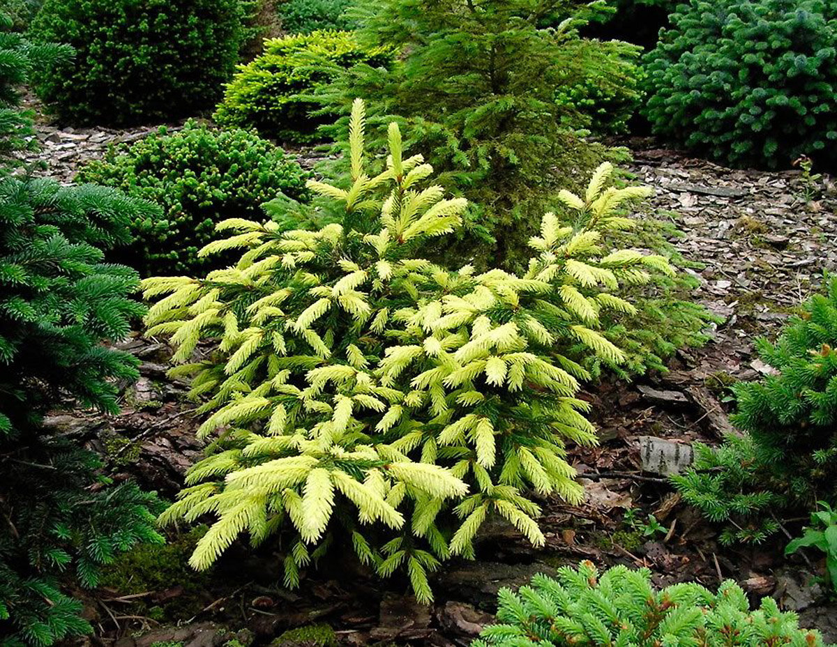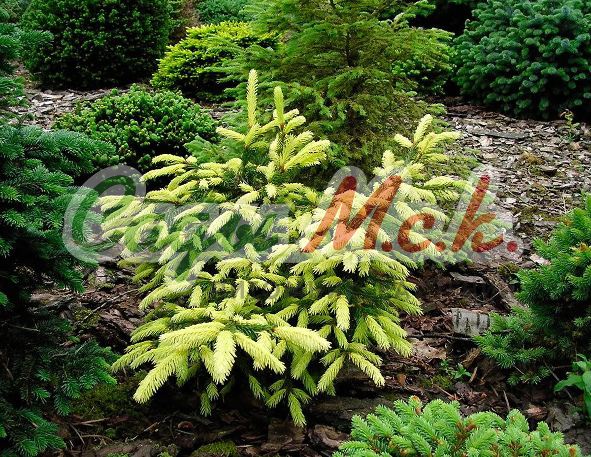 Ель конической формы. Ранее относилась к Picea orientalis. Высота к 10-ти годам 5 м и ширина 1 м, затем дорастает до высоты 10 м и ширины 2 м. Молодой весенний прирост кремово-жёлтый. Хвоя имеет жёлтые отблески. Место солнечное. Почва влажная дренированная. Зона 3 (до -34ºС).