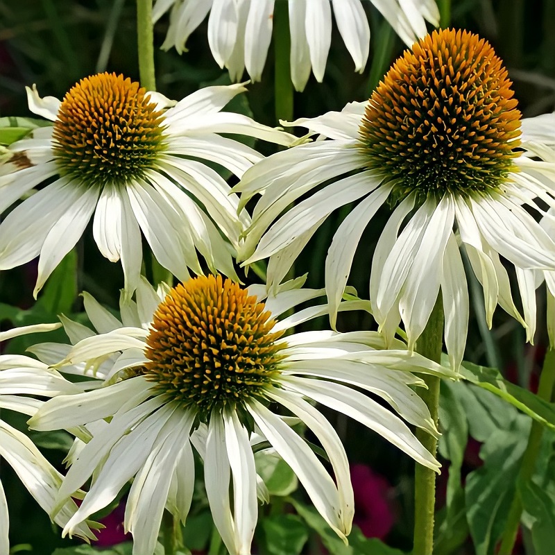 Эхинацея пурпурная Вайт Свон удивит поклонников этого не только красивого, но и целебного растения. Название переводится как «Белый лебедь», и оно полностью характеризует этот сорт эхинацеи. Цветы, достигающие 12 сантиметров в диаметре, имеют множество изящно изогнутых белоснежных лепестков и темную сердцевину. В высоту куст может достигать 90 сантиметров. Цветки красиво смотрятся на фоне обилия зеленых листьев. Куст высаживается как одиночно, так и может использоваться в составе смешанной композиции из цветущих растений. Цветение у Эхинацеи пурпурной Вайт Свон начинается в июле и заканчивается в сентябре-октябре.
