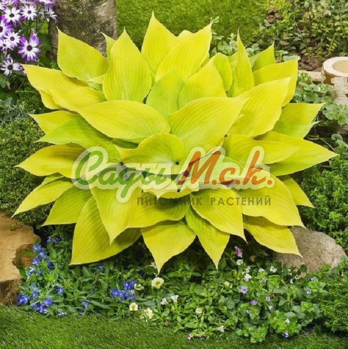 Хоста Аnn Kulра – многолетнее декоративное растение, образующее ярусный куст высотой до 50 см. Листовые пластины достаточно плотные, шелковистые, со слегка волнистым краем, небольшими выемками и сильно выраженным жилкованием. Они образуется весьма декоративный, плотный и компактный куст, который в середине лета зацветает, выбрасывая цветоносы с небольшими, лавандового цвета колокольчиками. Но заметным растение становится благодаря цвету своих декоративных листьев. Сердцевидные, голубовато-зеленые с золотисто-кремовым центром и зеленым краем – такую красивую окраску невозможно не заметить. Со временем светло-кремовый центр становится шире, а вот окантовка листа, наоборот, сужается. Гибридный сорт хорошо себя чувствует и в тени, и на солнце, предпочитая купаться только в утренних его лучах. Он может длительное время расти на одном месте. Но для сохранения расположенной по центру полосы его желательно часто делить.