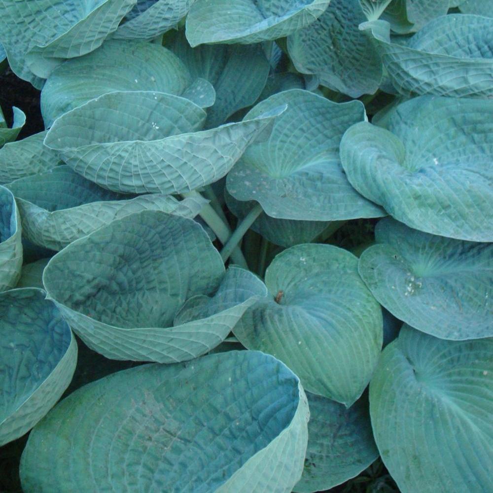 Хоста Big Dаddу – крупное, мощное растение с очень выразительной окраской. Это один из лучших «синелистных» сортов с крупными, чашеобразной формы, плотными листовыми пластинами, имеющими вафельную фактуру. Для многолетника характерен насыщенно-голубой цвет с матовым налетом, который в конце лета изменяется и становится практически зеленым. В июле над кустом появляются длинные цветоносы, достигающие 70 см высотой, на которых распускаются белые цветы-колокольчики, имеющие легкий лавандовый оттенок и едва уловимый аромат. Прекрасная «голубая» красавица разрастается очень медленно, особенно в молодом возрасте. Она предпочитает тенистые места, с удовольствием селится у водоемов или среди камней в альпинарии.