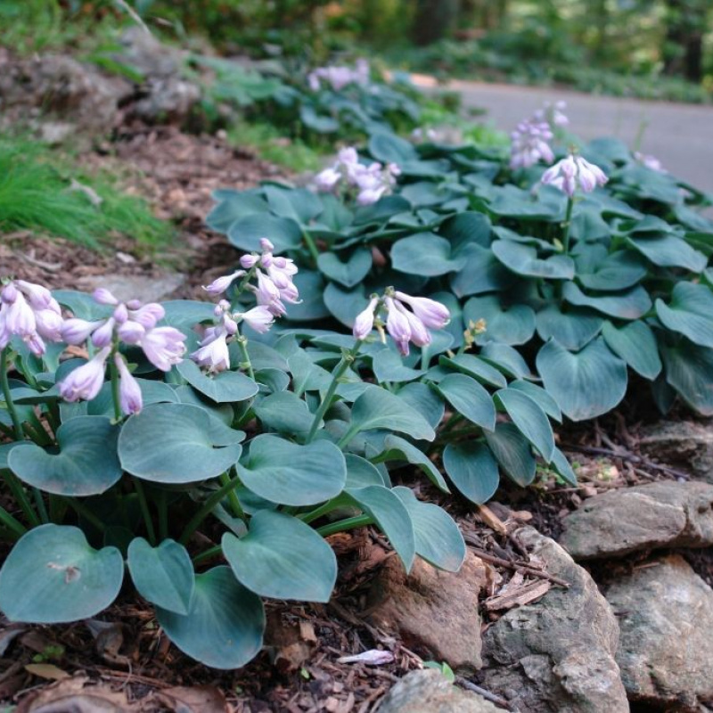 Хоста Bluе Mоusе Еаrs относится к группе карликовых растений, использование которых в тенистых уголках альпийских горок придаст им особое очарование. Аккуратные овальные листья темно-синего цвета в виде маленьких сердечек за счет своей плотной текстуры прекрасно держат форму куста. Листовая пластина имеет чашевидную форму с чуть волнистыми краями. Молодые листики имеют овальную форму, но в зрелом возрасте становятся практически круглыми. В середине лета кусты зацветают темно-лавандовым цветом. Необычны цветочные кисти этого многолетника: бутоны располагаются горизонтально и перед тем, как раскрыться, они, будто маленькие воздушные шарики, «надуваются». Сорт характеризуется умеренным ростом, устойчивостью к вредителям, терпимостью к солнечному расположению, хотя лучше себя чувствует в ажурной тени.