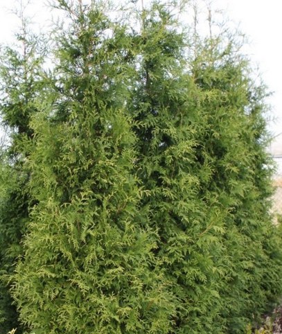 Туя западная Frieslandia - растение до 8 м в высоту и до 3 м в диаметре. Растет быстро: годовой прирост в высоту составляет 20 см. Крона плотная, широкая, колоновидная. Хвоя матовая, плотная, чешуйчатая ярко-зеленого цвета. Осенью листва становится серовато-бурого цвета, а весной снова зеленеет. Популярный сорт. Благодаря сравнительно быстрому росту часто используется для создания формованных живых изгородей.