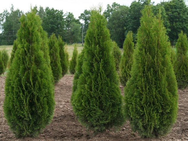 Туя западная Холмструп - взрослое деревце обычно не превышает 4 м в высоту. Туя формирует плотную, аккуратную крону в виде колонны чуть зауженной кверху. Сорт медленнорастущий, за год побеги удлиняются всего на 12 см. Ветви покрыты чешуйчатой хвоей темно-зеленого окраса. Крупномер западный Holmstrup хорошо развивается на солнечных участках, хотя выносит и тень. Туя отличается морозостойкостью, засухоустойчивостью. Семена используют для формирования живых изгородей, а также в одиночных посадках.